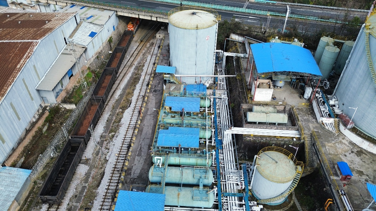 该厂区位于贵阳南火车站铁路专用线旁,拥有库容为22350吨的散装沥青库,可同时接卸7个铁路罐车,每日可接卸2组,日接货能力为1000吨。配有一条日生产能力480吨的改性沥青生产线、1条日生产能力40吨脱色沥青生产线。配有2个发油平台,每个发油台平均每小时可装一台车,日发运能力约1500吨。厂区设有沥青检测设备齐全的实验中心,检测设备每年定期送贵州省计量院检定,确保沥青品质符合要求。